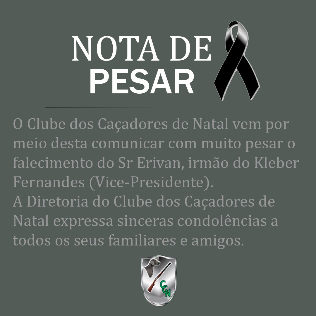 É com um profundo sentimento de pesar, que a família CCN, por meio de sua Diretoria, comunica aos seus amigos e associados, o falecimento de Erivan Fernandes, irmão do nosso Vice presidente Kleber Fernandes, com quem nesse momento de dor irreparável, compartilhamos sua dor, pois acreditamos que: “Uma alegria compartilhada se transforma em dupla alegria; “Uma tristeza compartilhada se transforma em meia tristeza!”
